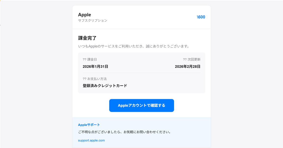 【検証】Appleを装ったメール「【重要】サブスクリプション更新のお知らせ」はフィッシン…