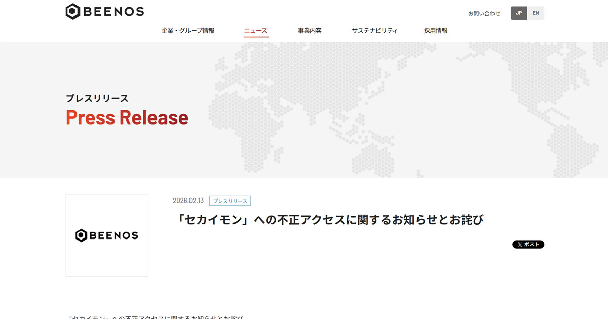 - 10 BEENOS子会社「セカイモン」に不正アクセス 2007年以降の全会員情報が対象 サービス一時停止