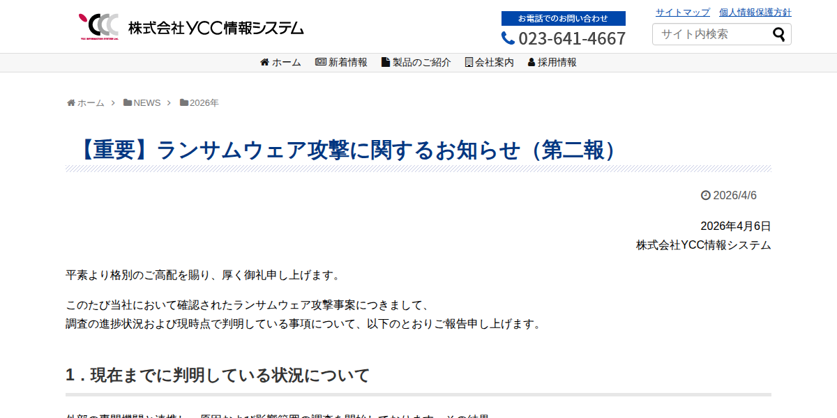 - 11 YCC情報システムにランサムウェア攻撃、情報窃取の可能性否定できず―侵入経路は調査中