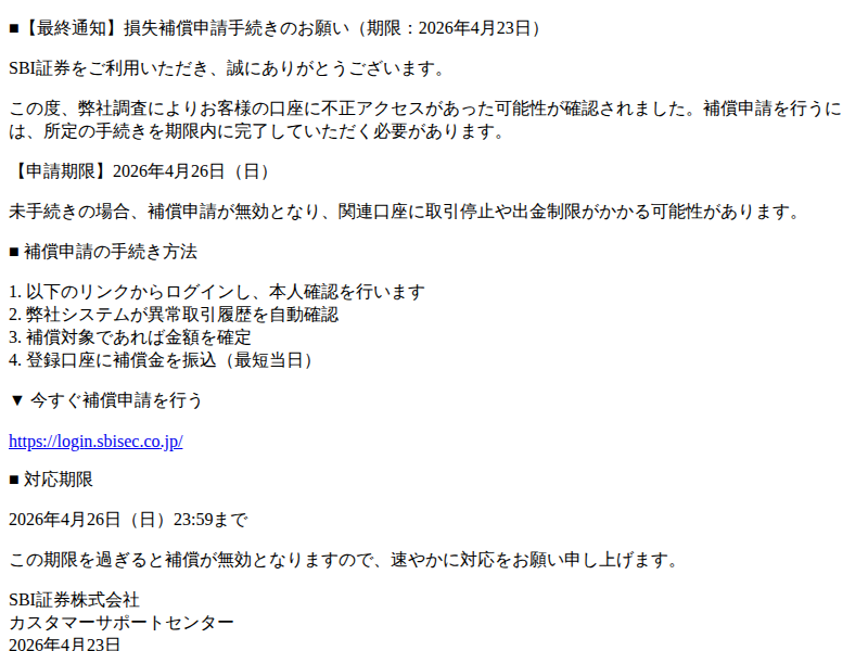 - 7 【警告・確定】「【公式案内】2026年度システム基盤改修に伴う認証環境の同期要請」── GMOクリック証券をかたるフィッシングメール、TDS…