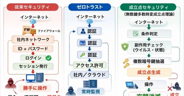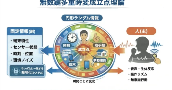 サイバー攻撃の構造的課題に挑む新理論「無数鍵多重時変成立点理論」発表 2026年3月10日:企業動向 株式会社ポイント機構と株式会社Kトラストは、サイバー攻撃が学習を繰り返す構造そのものを見直す新しいセキュリティ理論「無数鍵多重時変成立点理論」の基礎編を発表しました。この理論は、既存のシステム基盤に変更を加えることなくAPI接続を通じてセキュリティを最強化し、