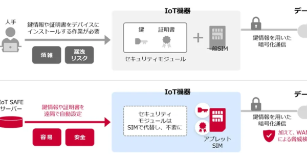 NTTドコモビジネス、AI時代のIoTセキュリティと大容量通信を強化 アプレットSIMでデバイス認証自動化 2026年3月25日:企業動向 NTTドコモビジネスは、AI時代のIoT拡大に対応するため、IoT向けサービス「docomo business SIGN(TM)」のセキュリティ・コネクティビティ機能を強化しました。2026年3月25日より、アプレットSIMを搭載した「Value」メニューと、