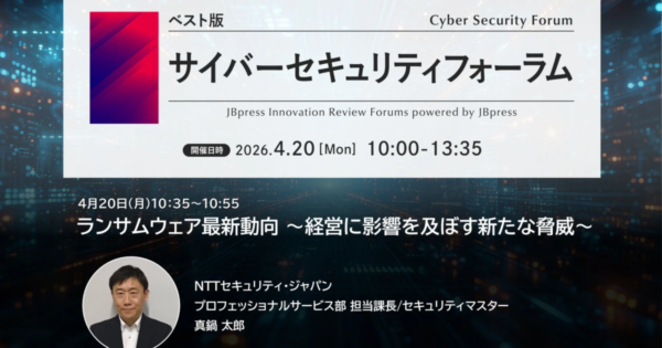 NTTセキュリティ・ジャパン、JBpress主催「サイバーセキュリティフォーラム」でランサムウェア最新動向を講演 2026年3月25日:企業動向 NTTセキュリティ・ジャパンは2026年4月20日開催の「サイバーセキュリティフォーラム(ベスト版)」にて、ランサムウェアの最新動向と経営への影響について講演します。AI時代の巧妙化するサイバー攻撃に対し、企業が取るべきレジリエントな防衛戦略を共有するこのフォ