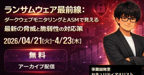 SMSデータテック、満席のランサムウェア対策セミナーを無料アーカイブ配信 ダークウェブとASMで脅威可視化へ 2026年4月14日:企業動向 株式会社SMSデータテックは、過去に満席となった人気セミナー「ランサムウェア最前線:ダークウェブモニタリングとASMで見える最新の脅威と脆弱性の対応策」の無料アーカイブ配信を、2026年4月21日(火)から4月23日(木)までの期間限定で実施します。企業が直面