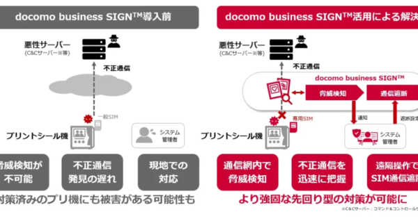 フリューとNTTドコモビジネス、プリ機のセキュリティ実証開始 エンタメ業界初の「docomo business SIGN™」活用 2026年4月16日:企業動向 フリューとNTTドコモビジネスは、エンタメ業界で初めてIoT向けNaaS「docomo business SIGN™」を用いたプリントシール機のセキュリティ実証実験を開始しました。将来的なAI連携も視野に入れ、個人情報を扱うIoT機器の安全性強化と新機能拡張に