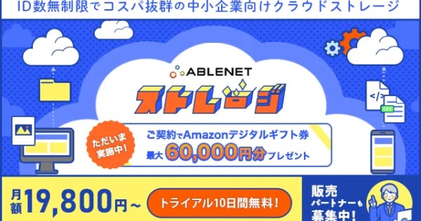 中小企業向けクラウドストレージ「ABLENETストレージ」がサービス開始、最大60,000円分のAmazonデジタルギフト券贈呈キャンペーン実施 2026年1月8日:企業動向 株式会社ケイアンドケイコーポレーションは、法人向けクラウドストレージサービス『ABLENETストレージ』の提供を開始しました。これに伴い、2026年1月7日から3月31日までの期間中、本契約者を対象に最大60,000円分のAmazonデジタルギフト券をプレゼン