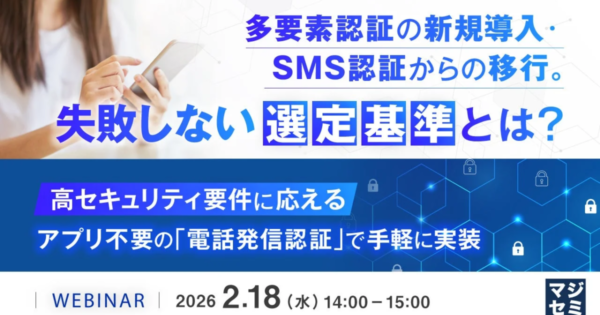 多要素認証の導入・移行を成功へ マジセミが選定基準ウェビナー開催 2026年1月19日:企業動向 マジセミ株式会社は、巧妙化する不正アクセス対策として多要素認証の新規導入やSMS認証からの移行を検討する企業向けに、「失敗しない選定基準」をテーマとしたウェビナーを2026年2月18日に開催すると発表しました。本ウェビナーでは、SMS認証の脆弱性に対応しつつ、