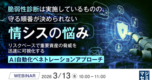 脆弱性診断後の対応に課題か、AI活用で「守る順番」を見極めるウェビナー開催へ 2026年3月2日:企業動向 サイバー攻撃の高度化を受け、多くの企業で脆弱性診断が実施されているものの、その結果を基に「何から対応すべきか」という優先順位付けに悩む情報システム担当者が少なくありません。ニッセイ情報テクノロジー株式会社は、こうした課題に対し、AIを活用したペネトレーションソ