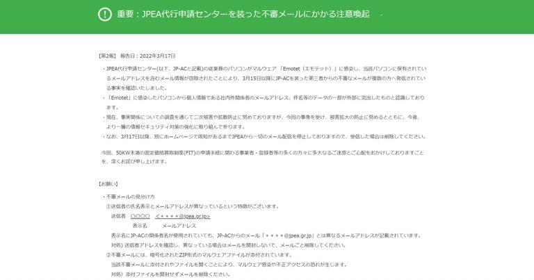 その他感染時の対応など、JPCERT CCの以下のページにて詳細が公開されています。