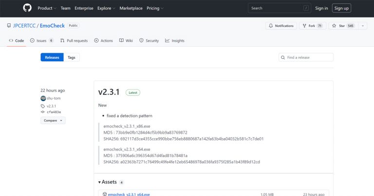 JPCERT コーディネーションセンターは2022年3月4日、EmoCheck(エモチェック)のバージョンv2.1をリリースしました。