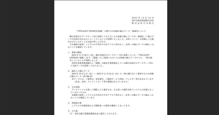 同社は外部専門機関と連携して詳細調査を継続中で、新たな事実が確認され次第、速やかに公表するとしている。一方で、利用者に対し、同社を装った不審なメールやメッセージに注意するよう呼び掛けている。