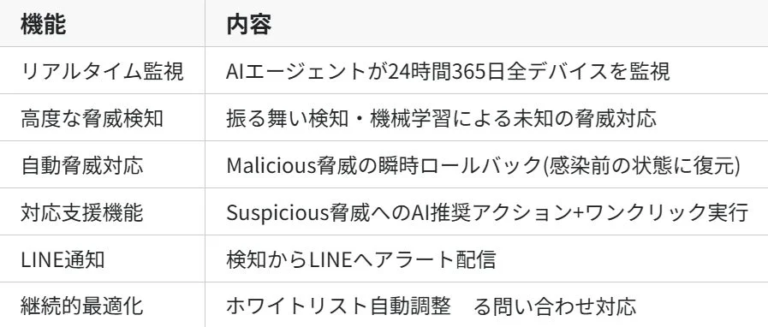 また、AIが24時間365日、自律学習しながら監視・対応することで、ルール定義やチューニングの手間を大幅に軽減する手法が紹介されます。年1回程度のアップデートで最新脅威に追随し、エージェントレスの仕組みによりEPP・EDRを導入できないレガシーOSや専用機器も検知対象に含められる点について、実装の勘所と既存基盤との連携ポイントが示される予定です。