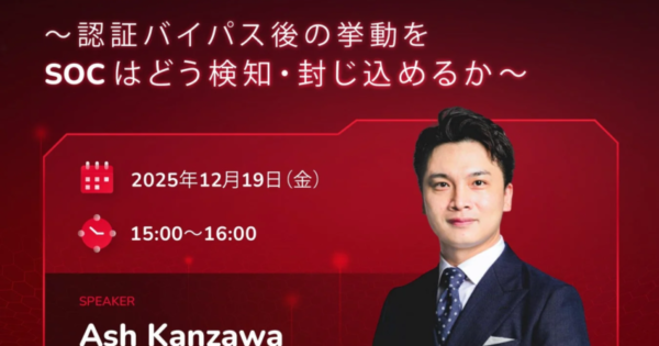 『XDRでも防げない、認証情報を保護してランサムウェア攻撃から身を守る』ウェビナー開催 2025年12月19日:企業動向 マジセミ株式会社は、株式会社インターナショナルシステムリサーチおよびサイバートラスト株式会社と共同で、「XDRでも防げない、認証情報を保護してランサムウェア攻撃から身を守る」をテーマとしたウェビナーを開催します。本ウェビナーでは、XDRだけでは対処しきれない認