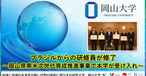 岡山大学、岡山県南米次世代育成推進事業のブラジル人研修員が修了 2025年12月20日:企業動向 岡山大学は、岡山県が主催する「令和7年度南米次世代交流プログラム」の一環としてブラジルからの研修員を受け入れ、情報セキュリティ分野における専門研修を実施しました。この度、研修員は修了式を迎え、今後の国際交流と人材育成への貢献が期待されます。
