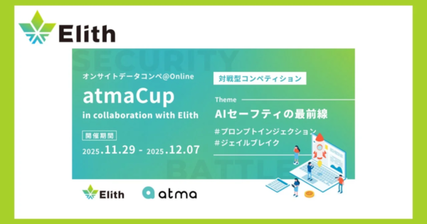 株式会社Elithとatma株式会社、「第21回 atmaCup 振り返り会」を共同開催 2025年12月20日:企業動向 株式会社Elithとatma株式会社は、データコンペティション「第21回 atmaCup」の成果と解法を共有する「第21回 atmaCup 振り返り会」を2025年12月24日にオンラインで開催します。本イベントでは、上位入賞者によるソリューション解説やライト