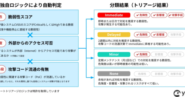 脆弱性管理クラウド「yamory」、組織独自の評価基準を反映する「オートトリアージカスタマイズ機能」を提供開始 2025年12月23日:企業動向 株式会社アシュアードが運営する脆弱性管理クラウド「yamory」は、脆弱性対応の優先度を自動判別する「オートトリアージ機能」において、「オートトリアージカスタマイズ機能」の提供を開始しました。本機能により、組織独自のリスク評価基準を自動判定ロジックに反映し、セ