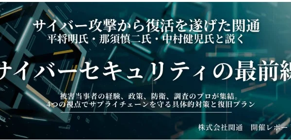 関通、サイバー攻撃からの復旧経験を共有 平将明氏ら専門家とセミナー開催 2026年1月30日:企業動向 物流とITオートメーション事業を展開する株式会社関通は2026年1月16日、パートナー企業向けに「サイバーセキュリティ勉強会」を開催しました。衆議院議員の平将明氏をはじめとする専門家が登壇し、同社が2024年に受けたサイバー攻撃からの復旧経験を踏まえ、サプライ